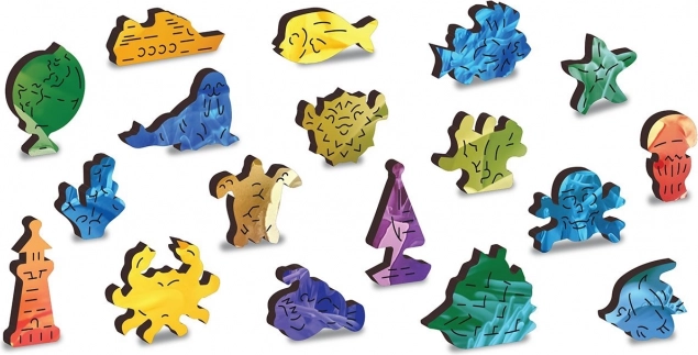 Medzi 400 dielikmi nájdete 61 špeciálnych tvarov – ryby, hviezdice a ďalšie námorné motívy. Niektoré dieliky môžu samostatne stáť ako drobné figúrky, čo skladanie robí ešte zábavnejším.