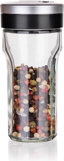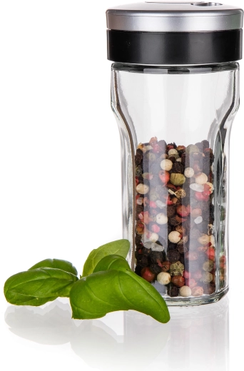 Hodí sa na širokú škálu korenín – od soli a mletej papriky po hrubozrnnú soľ, zmesi byliniek či celé guľôčky korenia. Sklenenú časť možno bez obáv vložiť do umývačky, takže údržba je rýchla a hygienická.