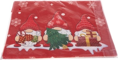 Červený podklad s bielymi vločkami a hravými trpaslíkmi krásne doplní sviatočné prestieranie a vytvorí príjemnú atmosféru.