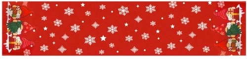 Vianočný behúň v sýtej červenej farbe s motívom bielych snehových vločiek a hviezdičiek dodá prestieraniu slávnostný nádych. Na koncoch ho zdobia veselí trpaslíci s darčekmi, ktorí vyniknú na bielom obruse aj vedľa klasického bieleho riadu.