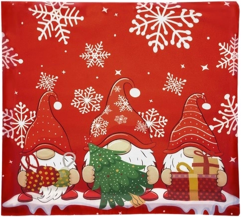 Výrazný motív škriatkov na červenom podklade so snehovými vločkami dodá interiéru hrejivý sviatočný nádych behom chvíľky.