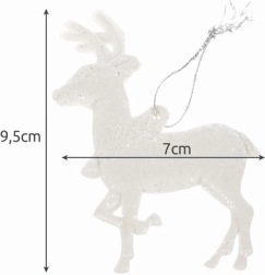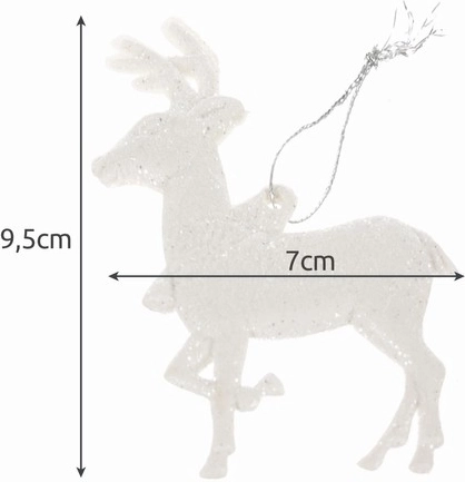 Elegantné vianočné ozdoby v tvare sobov s trblietavým povrchom dodajú vášmu stromčeku kúzlo a žiarivý lesk. Bezpečné z plastu a univerzálne na použitie.