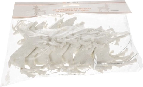 Dodejte svojmu vianočnému stromčeku oslnivé kúzlo s týmito ozdobami v tvare sobov. Sada obsahuje 9 elegantne spracovaných sobov, každý pokrytý trblietavým povrchom.