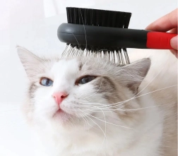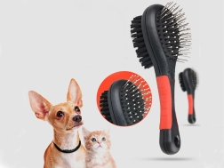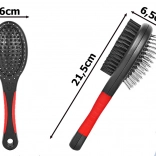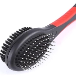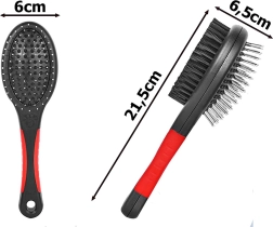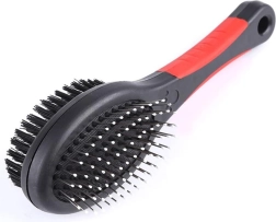 Obojstranná kefa je univerzálna pomôcka na pravidelnú údržbu srsti vášho miláčika. Kovové kolíčky s oblými zakončeniami šetrne rozčesávajú uzlíky a pomáhajú pri pĺznutí, zatiaľ čo husté nylonové štetiny odstraňujú prach, uhladzujú a dodávajú srsti zdravý lesk. Hodí sa pre krátku, dlhú, vlnitú aj drsnú srsť.