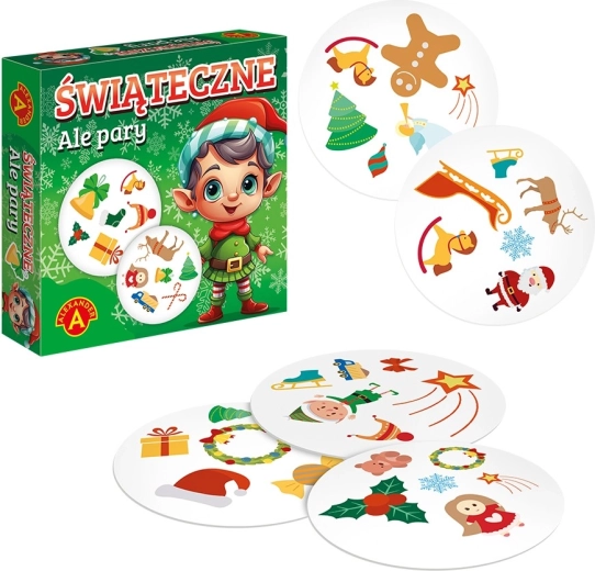 Rýchla a zábavná kartová hra pre celú rodinu, v ktorej hráči hľadajú zhodné vianočné symboly na dvojici kariet. Vďaka 31 kruhovým kartám so 6 obrázkami a meniacimi sa veľkosťami ikon preveríte svoj postreh, rýchlosť a sústredenie. Ideálne na sviatočné večery, oslavy aj hranie s priateľmi.