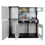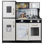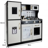 Detská kuchynka XL z kvalitného dreva (MDF) poteší detailným prevedením a odolnosťou. LED lampičku možno umiestniť pod skrinku, do skrinky alebo do rúry, takže si deti užijú atmosféru skutočného varenia aj za šera. Otočné tlačidlá sporáka vydávajú realistické „cvakanie“, čo ešte viac vtiahne do hry.