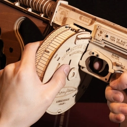 Táto drevená mechanická stavebnica prináša realistický zážitok z ikonického samopalu THOMPSON. Vďaka presnému laserovému rezaniu do seba diely perfektne zapadajú a zostavenie je plynulé a uspokojivé. Po dokončení získate pôsobivý model s funkčným gumičkovým mechanizmom, ktorý skutočne strieľa.