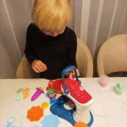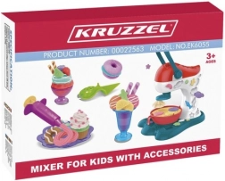 Tento farebný kreatívny set s lisovacou mašinkou v tvare mixéra umožňuje deťom jednoducho vytláčať, razítkovať a modelovať rozličné dobroty. Páka mixéra sa ovláda ľahko, takže si poradí aj menšie dieťa. Súčasťou je tiež striekačka na vytláčanie modelíny a miska s formičkami.