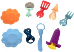 V balení nájdete 5 kelímkov modelíny v rôznych farbách, ktoré možno medzi sebou miešať a vytvárať nové odtiene. Bohatá sada nástrojov (nožík, vidlička, lyžica, tanieriky, poháriky a rôzne nadstavce) podporí kreatívnu hru, rozvoj zručností a zábavné hranie na kuchára.