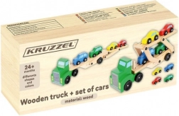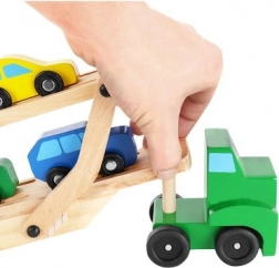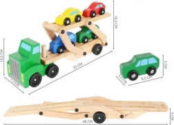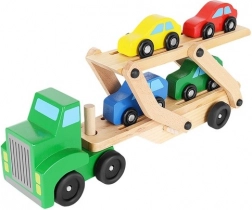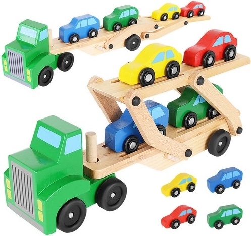 Drevený nákladiak s prívesom a autíčkami je hračka, ktorá sa bude páčiť každému malému milovníkovi autíčok. Vďaka tejto hračke sa môže malý potomok preniesť do sveta plného áut a nákladiakov a stráviť v ňom dlhé hodiny radostnej zábavy. Príves je vozidlo, ktoré rozhodne nesmie chýbať v žiadnej zbierke autíčok. S ním môže vaše dieťa voľne prevážať vozidlá z miestnosti do miestnosti a cítiť sa ako skutočný vodič kamiónu.