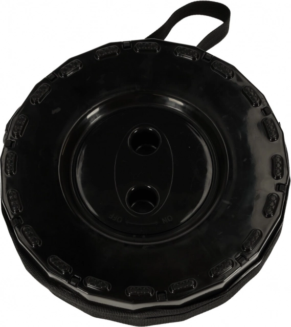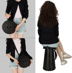 Po zložení má stolička tvar plochého disku. Vďaka popruhu a rukoväti ju vezmete do ruky alebo cez plece a ušetríte miesto v batohu.