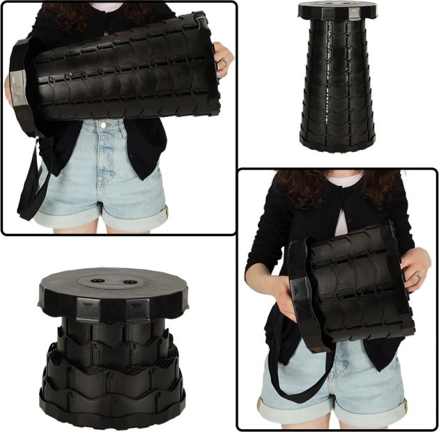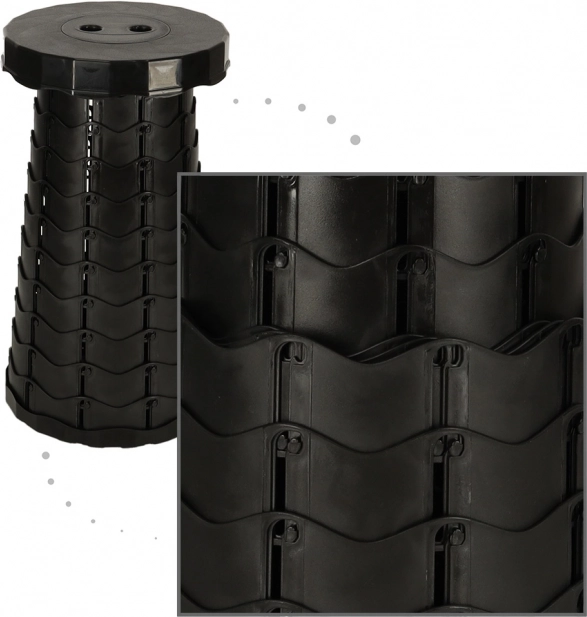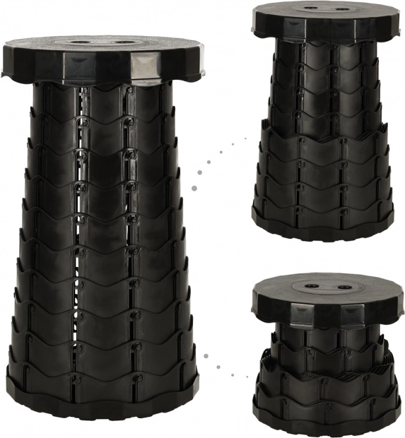 Táto prenosná teleskopická stolička poskytne pohodlné sedenie počas čakania v rade, na festivale, pri kempovaní či rybárčení. Rozložíte ju v okamihu – jednoducho otočíte základne, vytiahnete do požadovanej výšky a mechanizmus sa bezpečne zaistí proti samovoľnému zloženiu.