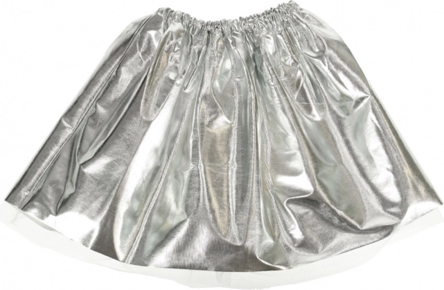 Sukňa zo strieborného materiálu dodáva outfitu magický a nádherný vzhľad. Dizajn sukne umožňuje pohodlné nosenie a jednoduchý pohyb.