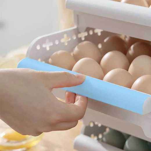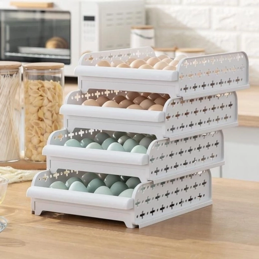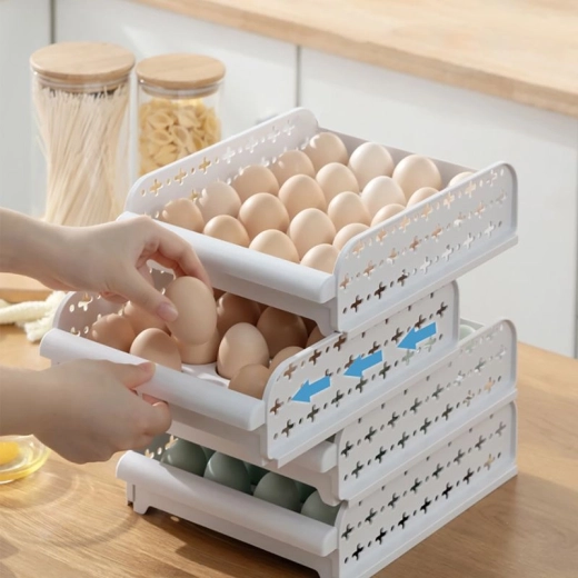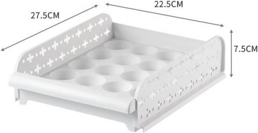 Praktická nádoba na skladovanie vajec so zabezpečeným dostatočným vetraním. Zásobníky je možné ukladať na seba a presúvať ich ako zásuvky.