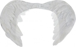 Anjelský kostým pozostávajúci z dvojvrstvovej sukienky na gumičku a bielych krídel pripomínajúcich anjelské krídla.