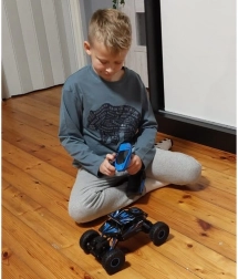 Pilot pre diaľkové ovládanie je navrhnutý tak, aby perfektne sedel v ruke, a ponúka intuitívne a pohodlné ovládanie s dosahom až 50 metrov. Užijete si dlhú jazdu s akumulátorom, ktorý možno ľahko dobiť priloženou nabíjačkou.