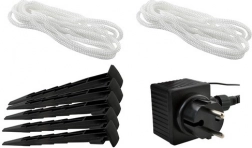 Polyesterová konštrukcia s krytím IP44 odolá zimnému počasiu. V balení nájdete lanká, kolíky aj napájací adaptér pre bezpečné ukotvenie a prevádzku.