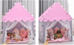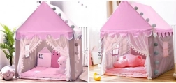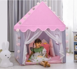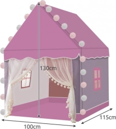 Kúzelný detský domček na hranie s jemnými záclonkami a 2 okienkami zo sieťoviny, doplnený o LED svetielka cotton balls (20 ks, 3 m). Priestranné rozmery 130 × 100 × 120 cm, podlaha v balení a jednoduchá montáž z neho robia ideálne miesto na fantazijné hry v detskej izbe aj na terase.