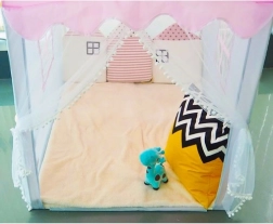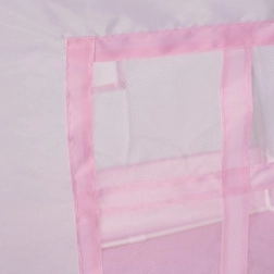 Veľkosť 130 × 100 × 120 cm ponúka dostatok miesta na knihy, vankúše aj obľúbené hračky. Dve sieťované okienka a závesy pri vstupe zabezpečujú súkromie aj dobré vetranie.