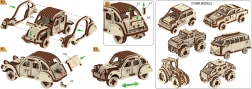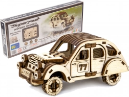 Tento model rally vozidla ponúka chytľavú kombináciu kreatívnej zábavy a elegantnej dekorácie do interiéru. Diely z prvotriednej brezovej preglejky do seba presne zapadajú – bez lepidla a skrutiek – a výsledkom je pôsobivé retro auto s množstvom drobných detailov.