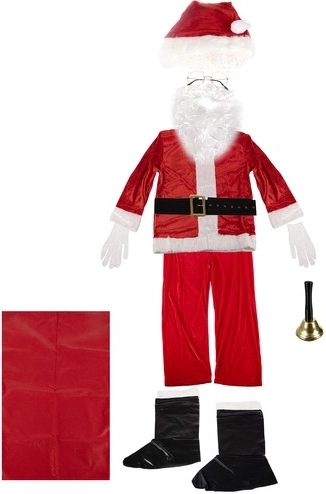 - nohavice, kabátik, návleky na topánky (2 ks), opasok, čiapka, parochňa, fúzy s fúzikom, rukavice (2 ks), okuliare, vrece na darčeky, zvonček