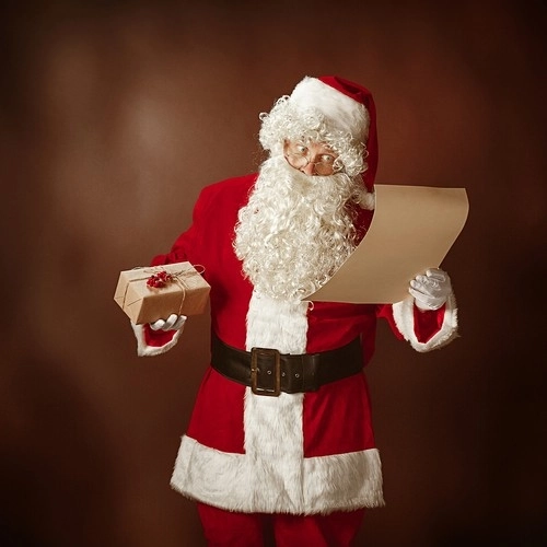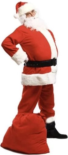 V balení nájdete všetko: kabátik, nohavice, čiapku, opasok, návleky na topánky, parochňu, fúzy s fúzikom, rukavice, okuliare, vrece na darčeky a zvonček – nič ďalšie nepotrebujete.