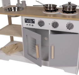• ANALÓGOVÉ HODINY + ZVUKY - analógové hodiny sú umiestnené vo výške očí dieťaťa, ručičky sú pohyblivé, takže sa dieťa môže učiť čas, horáky v kuchynke a mikrovlnnej rúre pri prepínaní ciferníkov cvaknú! Vaše dieťa bude nadšené - kuchynka mu umožní hodiny bezstarostnej hry.
