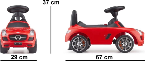 Odrážadlo inšpirované legendárnym modelom MERCEDES‑BENZ SLS AMG bolo navrhnuté s dôrazom na detail a pohodlie malých vodičov. Aerodynamický tvar, pevné spracovanie a jednoduché ovládanie prinášajú veľa radosti z jazdy, zatiaľ čo opierka chrbta a stabilná konštrukcia pomáhajú udržať správne sedenie.