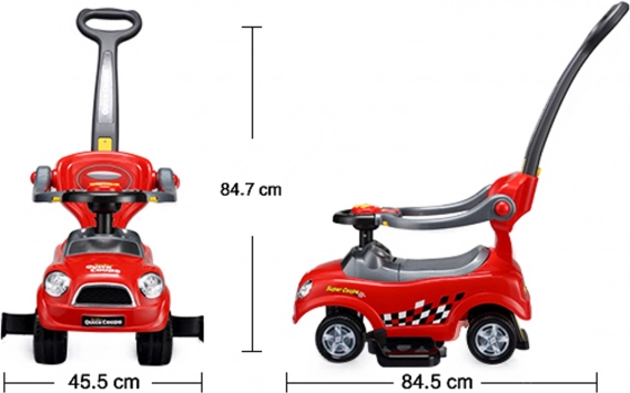 Šikovné riešenie 3 v 1 prináša tri režimy používania: bezpečný režim s ochrannými zábranami a stúpačkami pre najmenších, režim s vodiacou tyčou na ľahké ovládanie rodičom a klasické odrážadlo na samostatnú jazdu, keď dieťa dočiahne nohami na zem. Vďaka tomu ide o univerzálnu hračku, ktorá rastie s vaším dieťaťom a prispôsobí sa jeho zručnostiam.