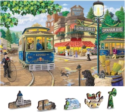 Toto prémiové drevené puzzle prináša živú scénu s retro električkou a uličkou plnou dobových detailov. Vďaka laserom vyrezaným dielikom s hladkými hranami je skladanie radosť aj výzva v jednom. Obojstranné prevedenie umožňuje skladať z lícovej strany podľa motívu alebo z rubu podľa opakujúceho sa vzoru.