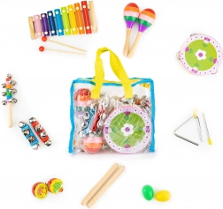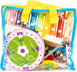 Objavte radosť z hudby s pestrou sadou 14 nástrojov, ktorá zabaví celú rodinu. Deti sa zoznámia s rytmom, tónmi aj melódiami a zároveň si precvičia jemnú aj hrubú motoriku. Priehľadná taška s uškom umožní mať všetky nástroje vždy pokope a pripravené na cesty aj do škôlky.
