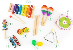 Od maracas a kastaniet po triangl, tamburínu a činely – pestrá sada podnecuje kreativitu a spoluprácu celej rodiny.