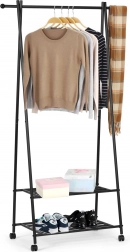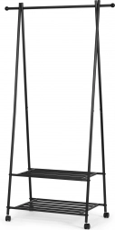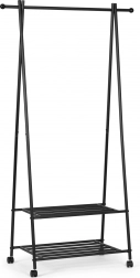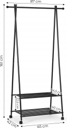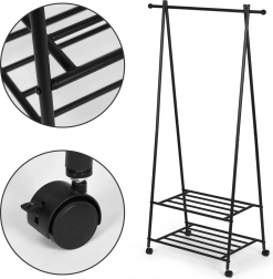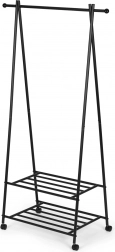 Horná tyč o dĺžke 77 cm je určená na zavesenie búnd a košieľ, zatiaľ čo bočné háčiky sú ideálne pre kabelky, batohy alebo šály a čiapočky. Dolné časti stojanu sú vybavené dvoma funkčnými policami pre menšie odevy či obuv. Kovová konštrukcia stojanu zabezpečuje stabilitu aj pri veľkom zaťažení.