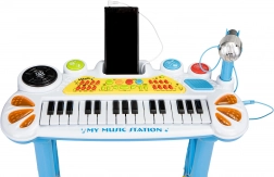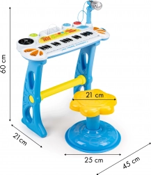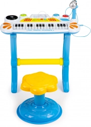 Rozvíňte hudobnú fantáziu vášho dieťaťa s týmto farebným elektronickým pianom so stoličkou, mikrofónom a možnosťou pripojenia telefónu/MP3. Ponúka 31 kláves, predprogrammované melódie, zvukové efekty nástrojov a karaoke – ideálny darček pre malých muzikantov od 3 rokov.
