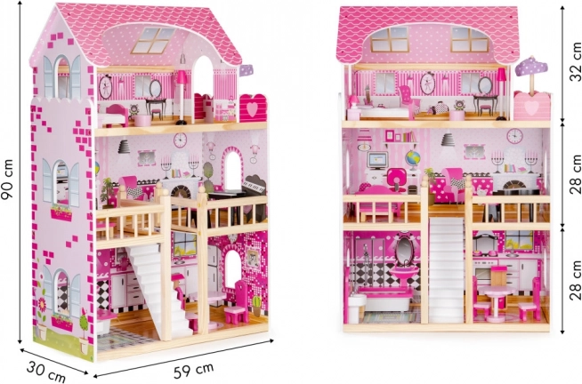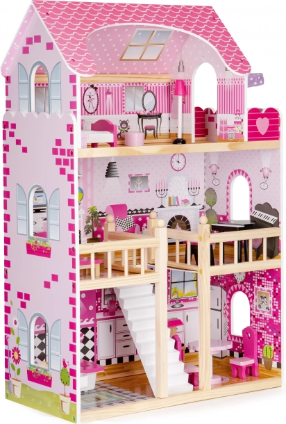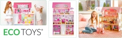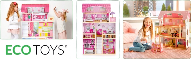 Domček pre bábiky ECOTOYS je navrhnutý pre kreatívnu hru a rozvoj fantázie detí. Skladá sa z troch nezávislých úrovní, celkovo s piatimi miestnosťami, ktoré dokonale napodobňujú skutočný dom. Každá miestnosť je vybavená nábytkom a dekoráciami, ktoré možno jednoducho premiestňovať podľa predstáv dieťaťa.