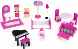 Tento domček zahŕňa 17 kusov dreveného nábytku, ako je stôl so stoličkami, sofa, kávový stolík, sporák s otváracími dvierkami, vaňa, toaleta, umývadlo so zrkadlom, piano so stoličkou, posteľ, nočný stolík a taburet, a tri stojacie lampy, čo umožňuje neobmedzené herné scenáre.