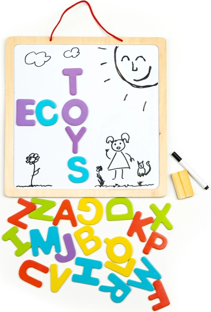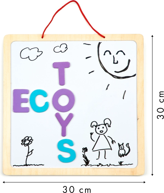 Učebná magnetická tabuľa ECOTOYS je dokonalým nástrojom pre rozvoj detí. Poskytuje široké možnosti kreativity vďaka použitiu kried, fixiek alebo magnetických písmen. Tabuľa je vhodná pre deti staršie ako 3 roky a jej bezpečná drevená konštrukcia umožňuje dlhodobú a bezpečnú hru.