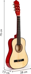 Objavte prvý hudobný nástroj pre malých muzikantov: kvalitnú detskú gitaru s dreveným telom, 6 strunami (3 kovové, 3 nylonové) a možnosťou ladenia. Odolná konštrukcia, 18 pražcov a klasický vzhľad podporujú rozvoj rytmu, sluchu aj kreativity.