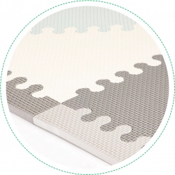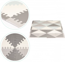 Matné trojuholníkové diely s "zubami" umožňujú kedykoľvek zmeniť tvar podložky. Hrúbka 0.9 cm poskytuje dokonalú ochranu pri páde a príjemnú mäkkosť pri používaní.