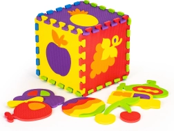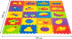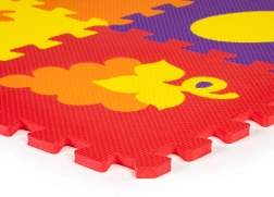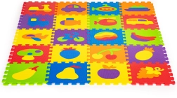 Keďže sa podložka spája ako puzzle, je z nej možné postaviť veže, kocky a ďalšie stavby podľa fantázie vášho dieťaťa. Každý obrázok možno zo štvorca vybrať, takže sa môžete hrať na ich usporiadanie a priraďovanie, a navyše bude mať batoľa možnosť naučiť sa názvy ovocia a vozidiel.
