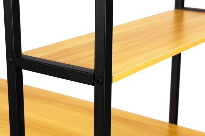 Ak hľadáte kombináciu moderného dizajnu a funkčnosti, tento počítačový stôl s loftovými policami je ideálnou voľbou. Pracovná plocha z prírodného dreva, podopretá čiernym kovovým rámom, dodá vašej domácej kancelárii či pracovnému priestoru štýl a praktickosť.