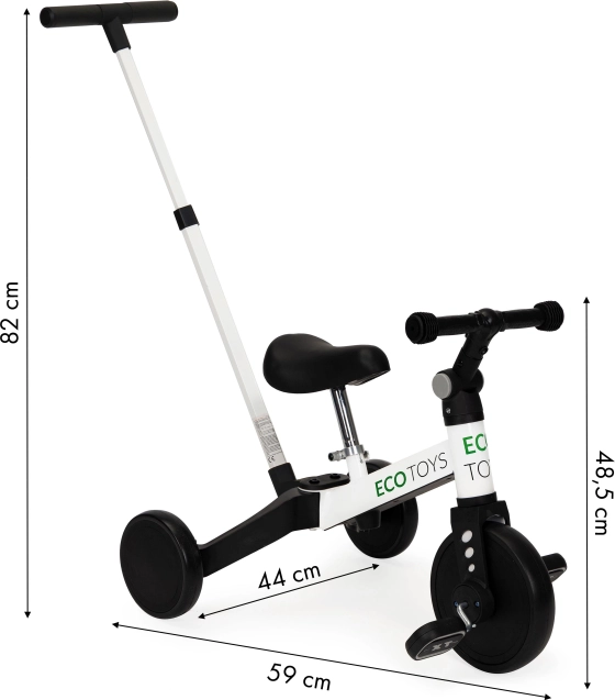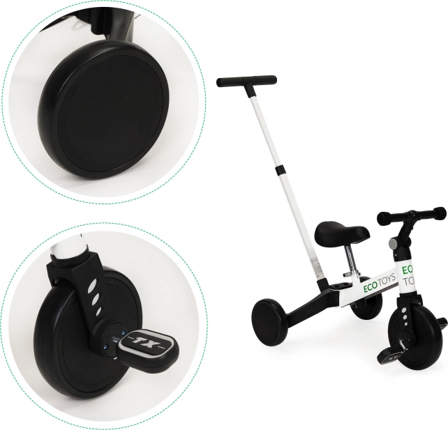 Detská trojkolka ECO TOYS predstavuje inovatívne riešenie pre malých prieskumníkov, ktorí sa chcú učiť jazdiť na kole. Tento model kombinuje rovnovážne kolo s tradičným jazdným kolesom, čo umožňuje jednoduchý prechod a rast s dieťaťom.