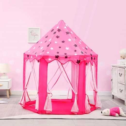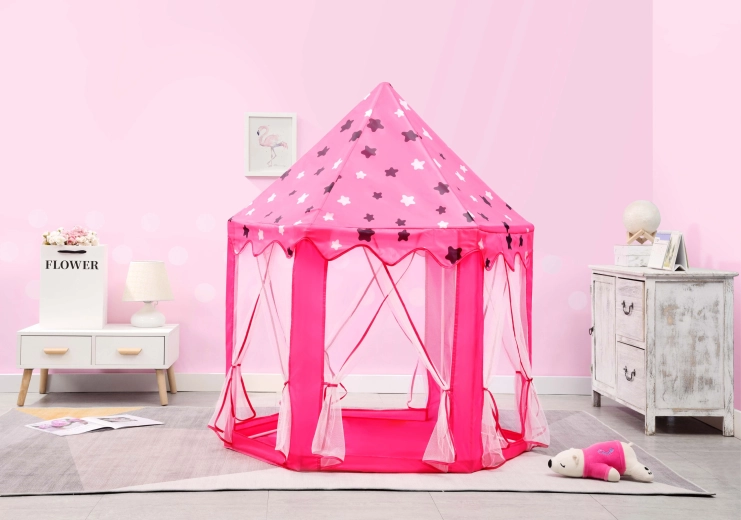 Premeňte detskú izbu na rozprávkové kráľovstvo. Tento stan v podobe princeznovského zámku ponúka útulný kútik na hranie, čítanie aj relax. Vďaka ľahkému skladaciemu rámu a textilnej podložke ho jednoducho postavíte doma aj vonku. Transparentné sieťované panely zabezpečujú prúdenie vzduchu a prehľad o dianí vo vnútri.
