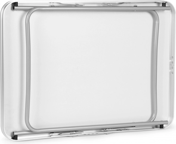 Vďaka možnosti zloženia nôh ho môžete ľahko zmeniť na praktický kufor. Takto zložený stôl môžete pohodlne prepravovať, jeho kompaktné rozmery umožňujú ľahké uloženie do kufra auta alebo jeho uskladnenie, čím šetríte miesto.