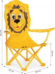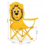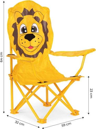 Stolička je vyrobená s ohľadom na odolnosť a bezpečnosť detí. Jej rám je z odolných oceľových rúrok, ktoré jej poskytujú dostatočnú stabilitu a pevnosť. Oranžový poťah s grafikou leva upúta pozornosť a zaujme každé batoľa. Na výrobu poťahu bol použitý polyester (600D), navyše potiahnutý polyuretánom, ktorý je odolný voči dažďu a slnku. Vďaka tomu stolička poslúži mnoho sezón a rýchlo sa stane vaším obľúbeným miestom na sedenie.