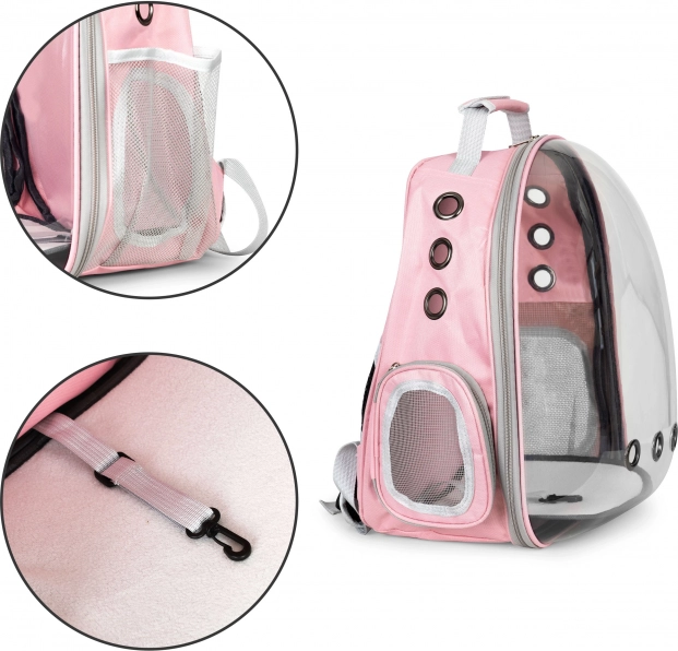 Pre majiteľa je batoh pohodlný vďaka ergonomickým popruhom, pevnej rukoväti a premyslenej výbave: bočné vrecká na maškrty a drobnosti, bočný zipsový vstup pre rýchly prístup k zvieraťu a ľahko umývateľné vnútorné dno pre čistotu pri každom výlete.