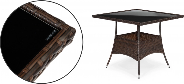 Zažite pohodlie a štýl na vašej záhrade s našou ratanovou súpravou Pregasio. Táto elegantná súprava zahŕňa štyri pohodlné stoličky, ktoré poskytujú dokonalú oporu chrbta, a praktický stôl s bezpečnou temperovanou sklenenou doskou.