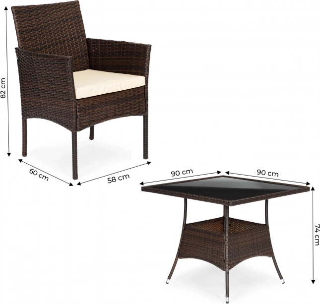 Veľký stôl má priemer 90 cm a poskytuje dostatok miesta pre rodinné stretnutia, posedenie s priateľmi alebo pokojné večery na vašom balkóne či terase.