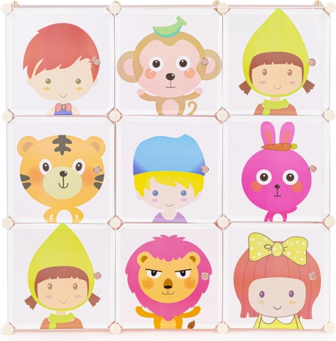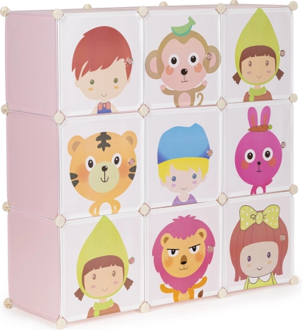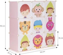 Predstavujeme detskú knižnicu, ideálnu na ukladanie ich milovaných hračiek, knižiek a drobností. Táto modulárna skrinka sa skladá z 9 políc (modulov), ktoré možno voľne usporiadať a prispôsobiť tak nábytok individuálnym potrebám a preferenciám.