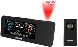 Digitálna meteorologická stanica METEO ponúka komplexné riešenie pre meranie teploty a vlhkosti, a to ako vnútri, tak vonku. Je vybavená projektorom, ktorý zobrazuje kľúčové informácie ako čas a teplotu na zvolenej ploche v miestnosti.